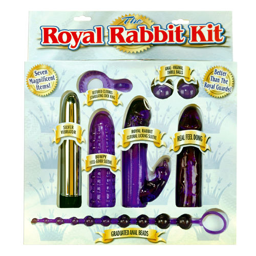 Набор из большого пластикового вибратора серебряного цвета, который работает от двух батареек типа С (длина 17 см, диаметр 3,5 см). Для этого вибратора есть 2 насадки - насадка с массажными точками, вторая - насадка с клиторальным стимулятором-зайчиком - насадка удлинит вибратора на 4,5 см. Также в комплекте массажное колечко на пенис со стимулятором клитора, мягкие вагинальные шарики со смященным центром тяжести диаметром 3 см каждый (вес двух шариков 63 грамма). Также в наборе есть анальная цепочка из 10 звеньев диаметром от 1 см до 2,5 см, длина цепочки 27 см.